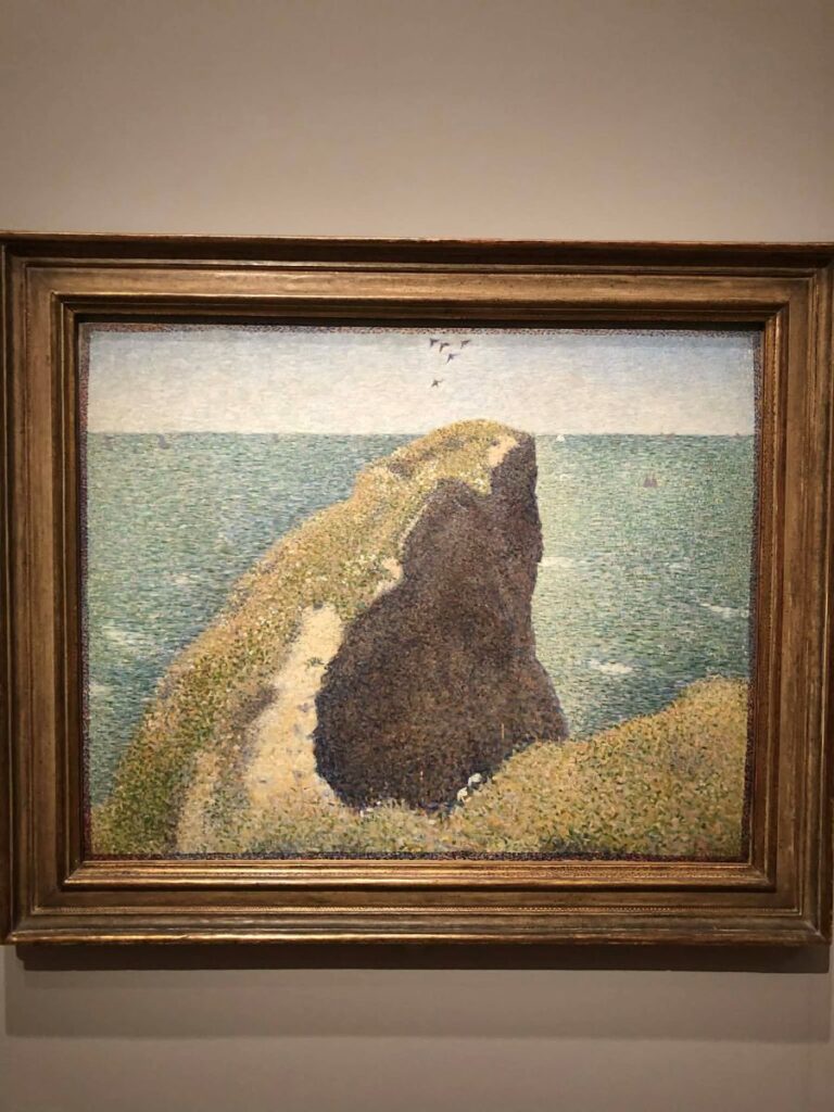 Posebno je zanimljiv dio izložbe u kojem su grupirani radovi nastali na istim lokacijama, poput luke Port-en-Bessin. Predstavljajući nekoliko pogleda na istu luku, izložba naglašava Seuratov sustavan pristup slikanju. Male varijacije u boji, kompoziciji i perspektivi pretvaraju poznati prizor u niz vizualnih eksperimenata. Istodobno, ta djela imaju neočekivanu emocionalnu snagu. Njihova mirna površina i gotovo potpuni izostanak ljudskih figura stvaraju osjećaj tišine koji je u snažnom kontrastu s živim prizorima pariškog života iz Seuratovih drugih slika.