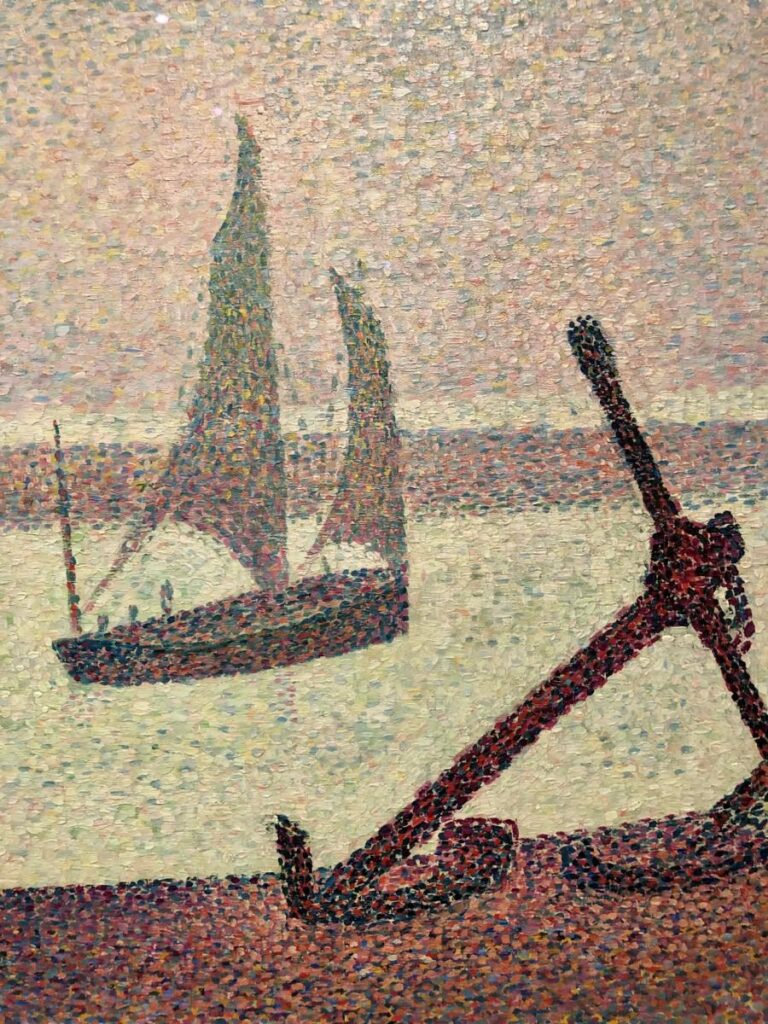 Njihova skromna veličina i pojednostavljene kompozicije , često tek more, nebo i luka, omogućuju gledatelju da uoči suptilnu strukturu Seuratove tehnike. Pažljivo postavljene točke i potezi boje stvaraju površine koje trepere kontroliranom svjetlošću.