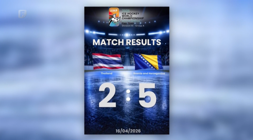 Hokejaška reprezentacija BiH porazila je Tajland 5:2 u 3. kolu Svjetskog prvenstva treće Divizije u Južnoj Africi.