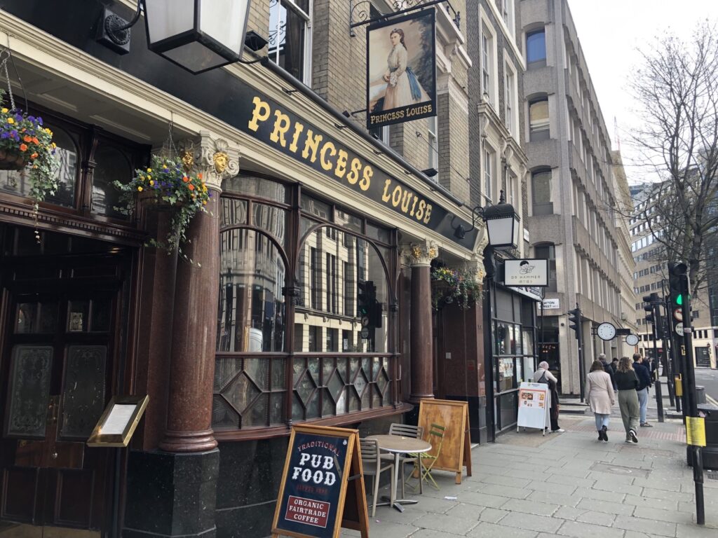 Princess Louise s pravom se smatra jednim od najboljih očuvanih primjera viktorijanskog „gin palace“ interijera. Ulazak unutra djeluje poput ulaska u sačuvanu vremensku kapsulu; gravirano staklo, tamni drveni separei, mozaični podovi i bogato ukrašena ogledala oblikuju prostor. Izgrađen krajem 19. stoljeća, raspored odražava vrijeme kada su posjetitelji bili suptilno razdvajani prema klasi i spolu. Ono što ga čini doista posebnim jest koliko je ostao netaknut, manje moderna rekonstrukcija, a više živi muzej. Unatoč povijesnoj raskoši, zadržava toplu i nepretencioznu atmosferu u kojoj se lokalci i posjetitelji druže uz pažljivo točena piva.